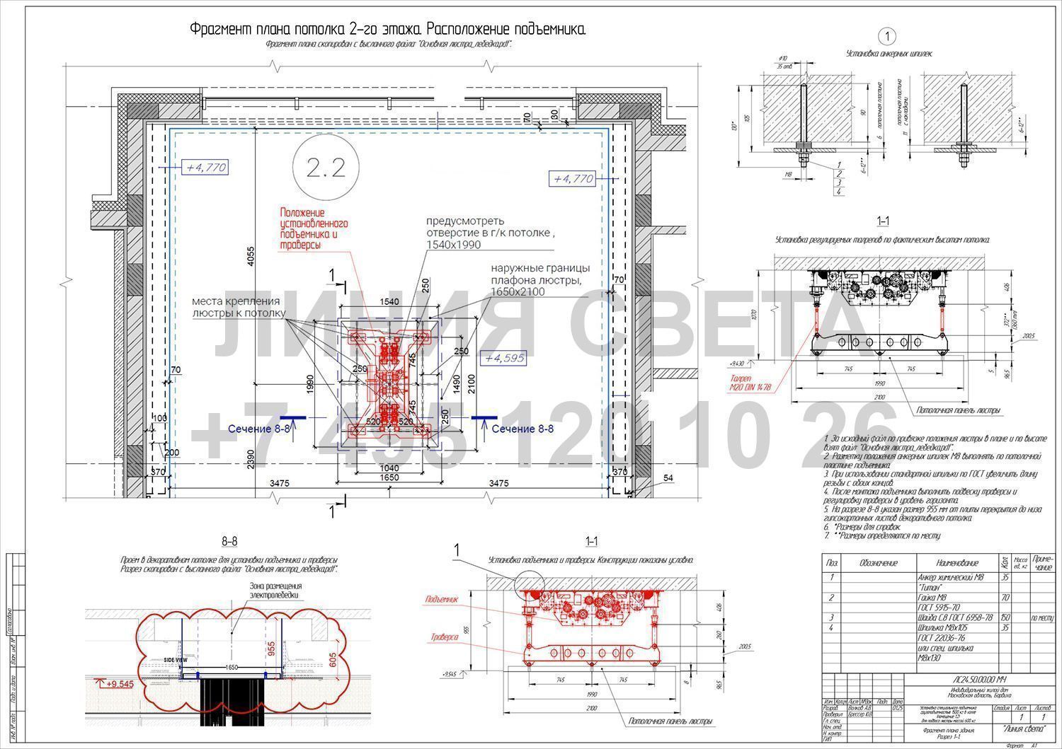 -Система подъема люстры на 4х тросах. Барвиха.
