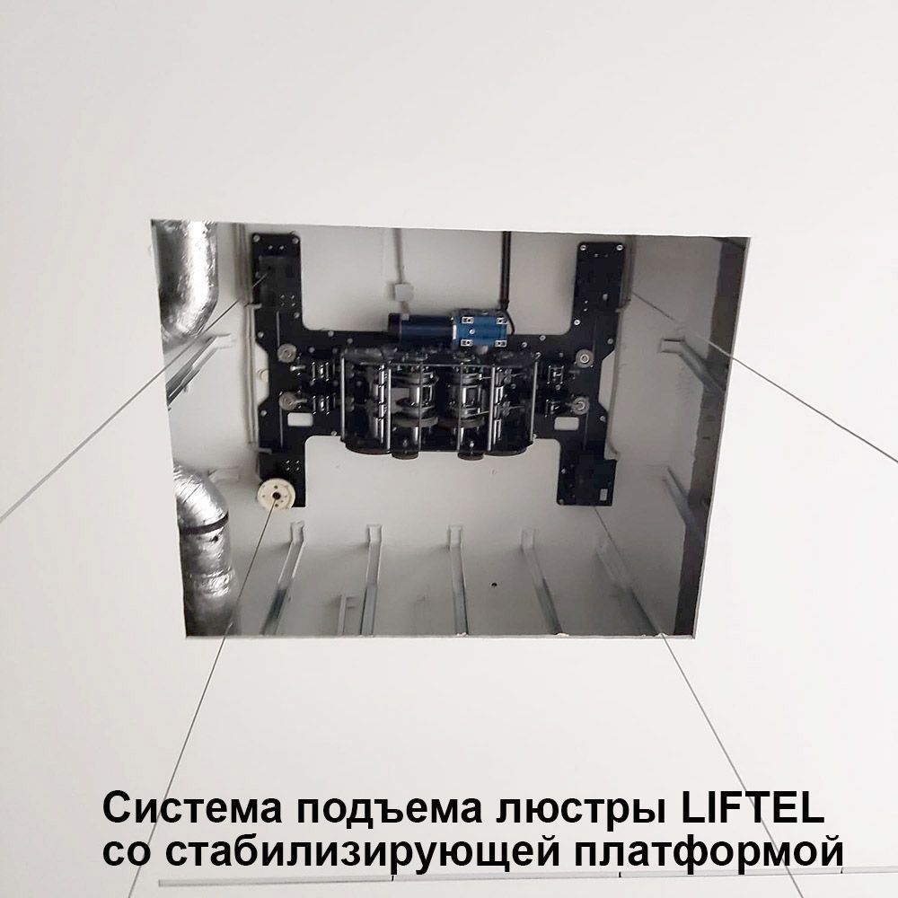 Чтобы удержать люстру в горизонте на протяжении всего вертикального перемещения, необходима платформа, стабилизирующая люстру.